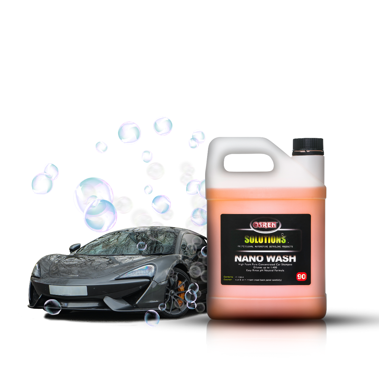 Basic yet ultra concentrated pH neutral car shampoo that does what it does - clean, without harming the paint, coating or waxed finish. OSREN’s Nano Wash shampoo is designed to quickly and reliably encapsulate dirt and grime off your vehicle so you can clean without dulling the paint while keeping its original gloss