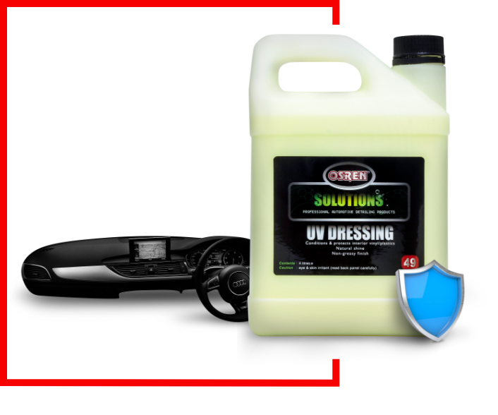 OSREN UV Dressing instantly revives the look of old and dull interior vinyls, plastics and rubber parts. OSREN UV Dressing is specially formulated to give your dashboard a lustrous natural shine which is pleasant to the touch while protecting it from UV rays that causes premature fading and cracking
